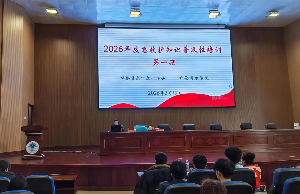 作为第三批全国急救教育试点学校,为进一步完善急救教育体系、普及应急救护知识,提升学生应对突发意外伤害的自救互救能力,3月19日下午,我校在图书馆四楼报告厅召开2026年第一期应急救护普及性培训讲座。本次培训邀请呼伦贝尔市红十字会宫晓琳、张静凤担任主讲,各学院学生代表等共114名学生参训。培训以“理论讲解+实操演示+现场考核”模式,引导学生系统学习核心急救技能,扎实推进试点学校急救教育落地见效。