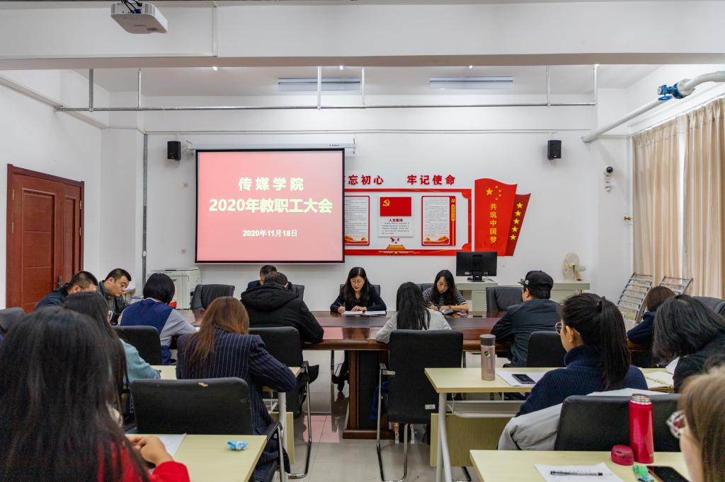 11月18日下午,传媒学院在崇文楼A420会议室召开2020年教职工大会,这是全体教职工民主参与学校管理,发扬主人翁意识的重要体现,由工会主席杨贺同志主持。