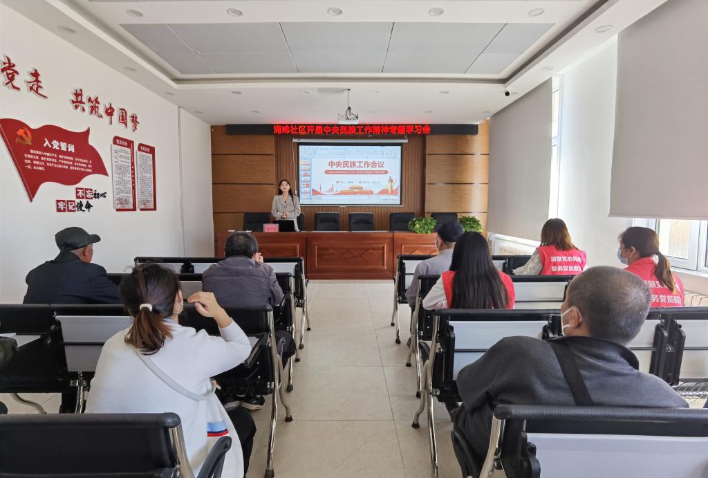 为深入学习贯彻习近平总书记在中央民族工作会议上的重要讲话精神,铸牢中华民族共同体意识,有效帮扶包联社区,进一步落实我为群众办实事的工作要求,9月29日,历史文化学院青年教师敖程程来到历史文化学院包联社区呼伦街道海啤社区作“铸牢中华民族共同体意识为主线,推动新时代党的民族工作高质量发展”讲座。