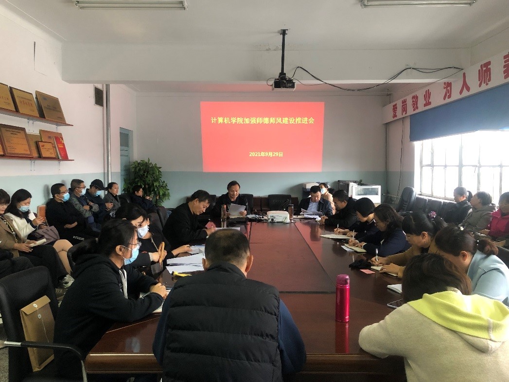为扎实推进计算机学院师德师风建设,强化教师文明从教、廉洁从教、规范从教的职业意识,9月29日下午,计算机学院组织全体教职工在学院会议室召开加强师德师风建设推进会。会议由党总支书记布仁白乙拉主持,全体在校教师参加会议。